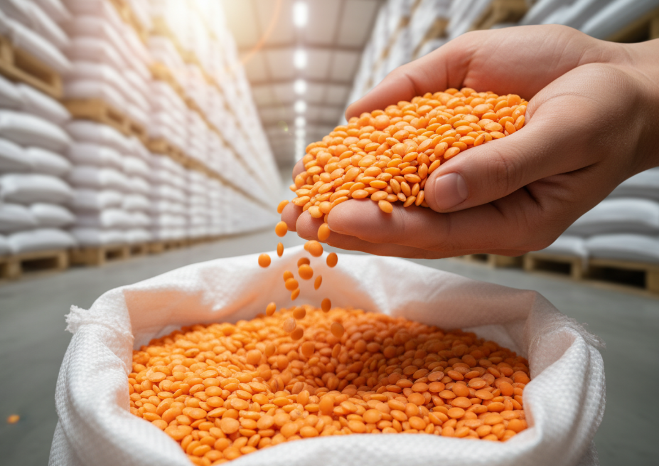 عدس أحمر (مرجاني) مستورد من مصر. غالباً ما يكون من صنف “فوتبول” (كامل ومشمع بالزيت) أو مجروش حسب التوفر. منتج جذاب بصرياً بفضل لونه البرتقالي اللامع. يكثر الطلب عليه لتحضير “الشوربة” لأنه يذوب بسرعة ويعطي ملمساً مخملياً ناعماً. خيار اقتصادي أكثر من العدس الكندي، ومثالي للأسواق الشعبية. الصنف: فوتبول (مستدير) أو مجروش. اللون: برتقالي مشمع بالزيت. الطبخ: سريع. التعبئة: أكياس 25 كجم.