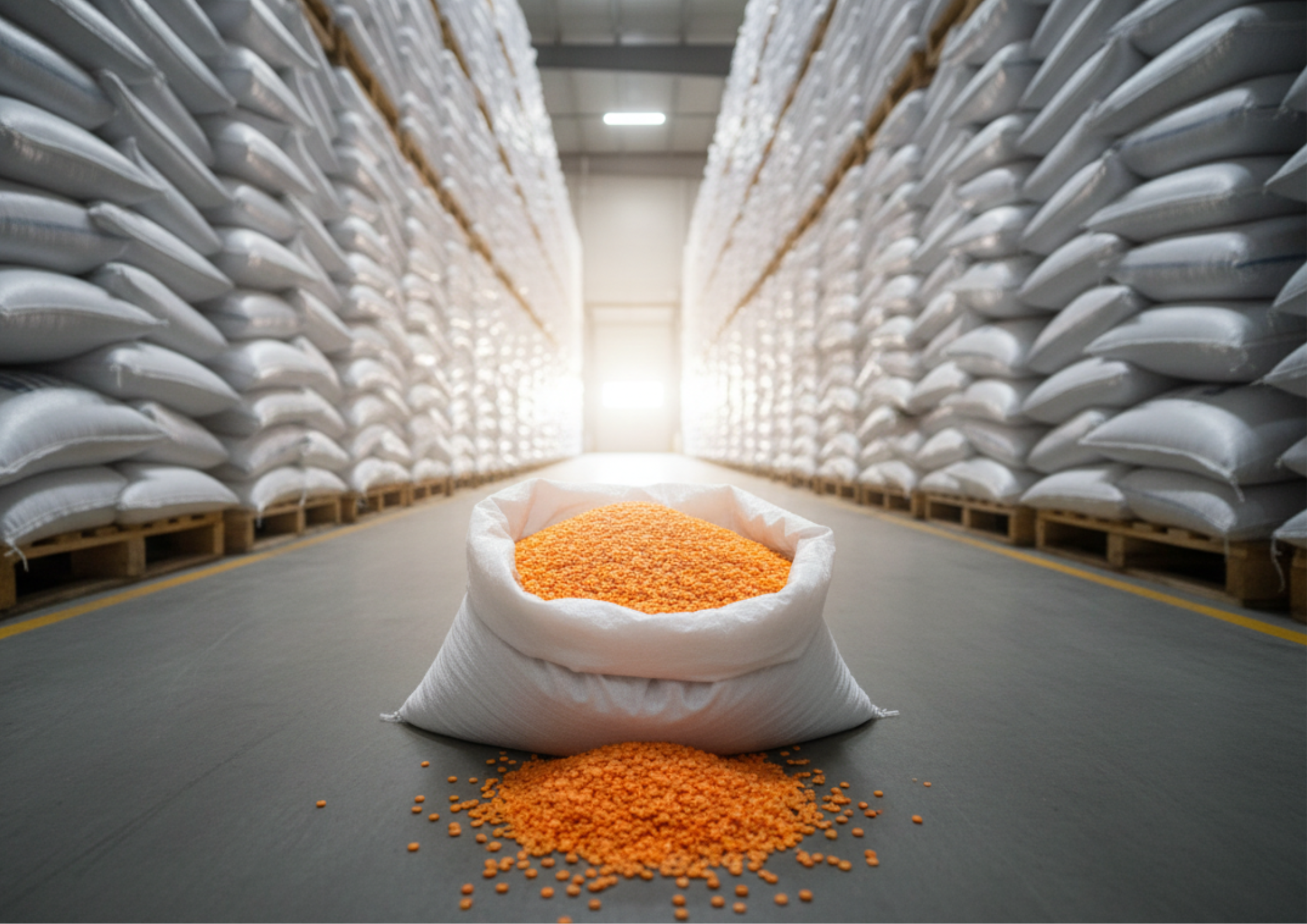 عدس أحمر مقشور، مستورد من تركيا أو كندا. يتميز بلونه البرتقالي الزاهي الذي يتحول إلى أصفر ذهبي عند الطهي. هذا المنتج “بدون قشرة”، مما يعني أنه ينضج بسرعة فائقة (15 دقيقة) ويذوب حرفياً في الحساء. إنه المكون الأساسي للشوربات المخملية، والطبخ الشرقي (شوربة) والهندي. بضاعة نظيفة، مصقولة (بالزيت أو الماء) ومعايرة، خالية من الغبار. الصنف: كرمسون أو فوتبول (كامل/مهروش). اللون: برتقالي زاهٍ. الطهي: فوري (ذائب). التعبئة: أكياس 25 كجم.