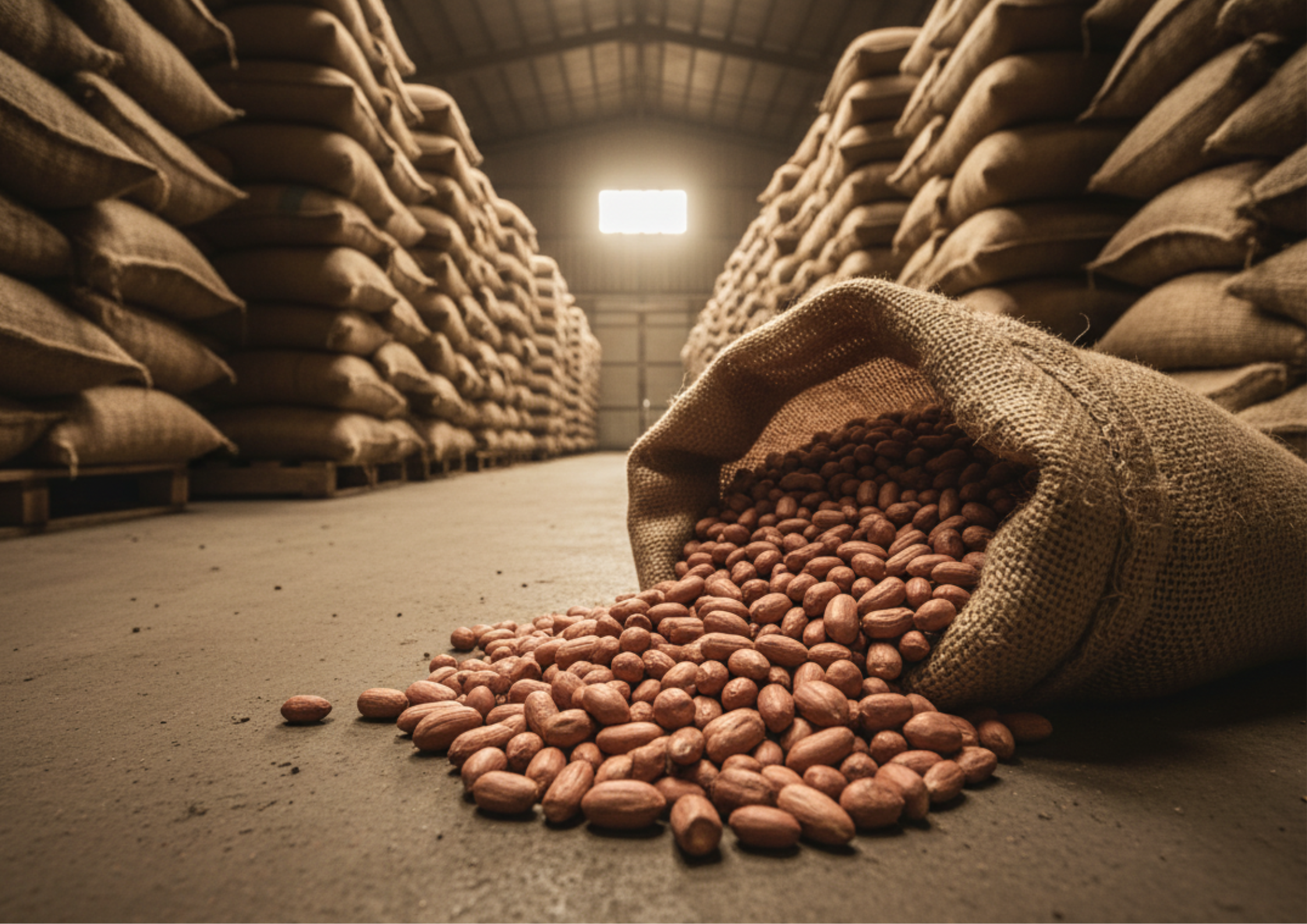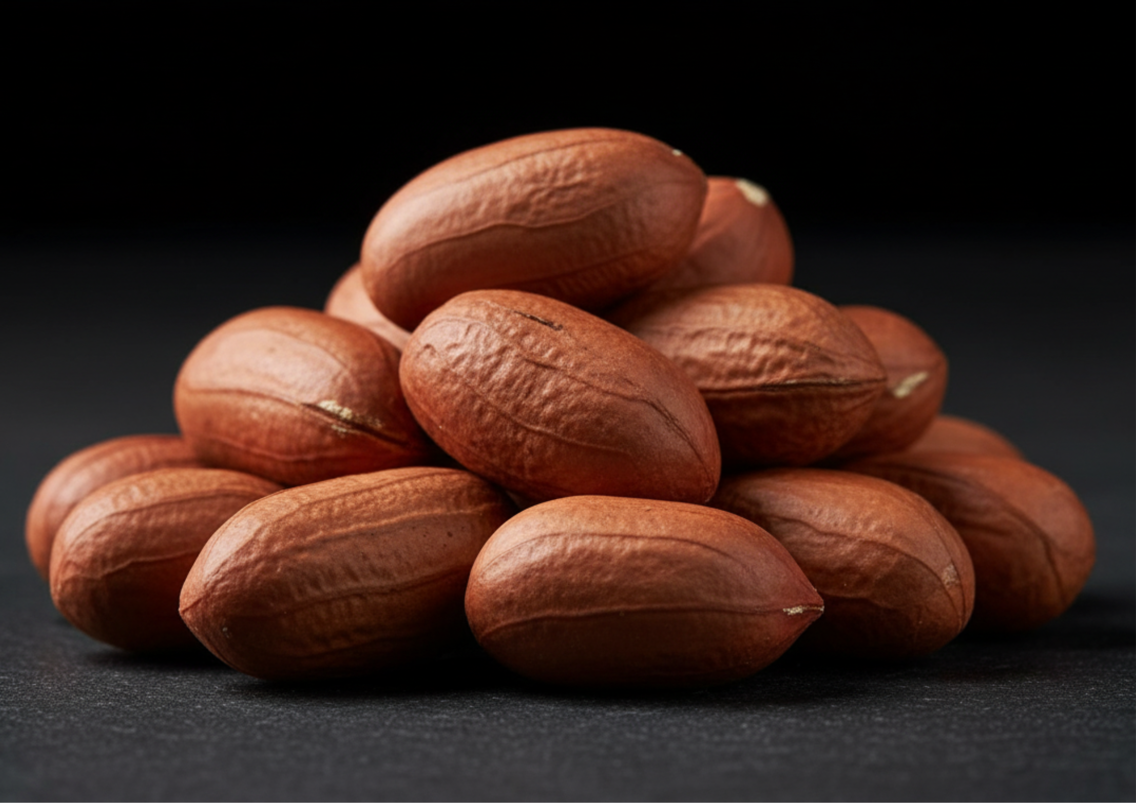 Variété : Red Skin (Peau Rouge) ou Blanchi. Calibres : 38/42, 40/50 (Gros). Conditionnement : Sacs Jute 50kg ou Big Bags 1T.